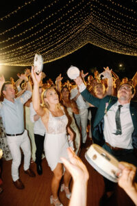 Wedding fireworks celebration at Wonderland Uluwatu Bali with bride and groom dancing in a vibrant destination wedding atmosphere.