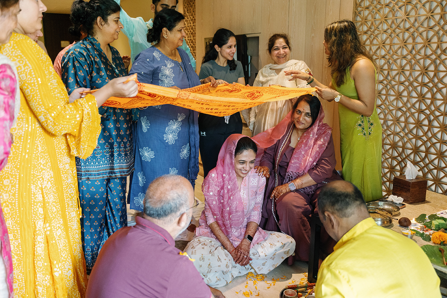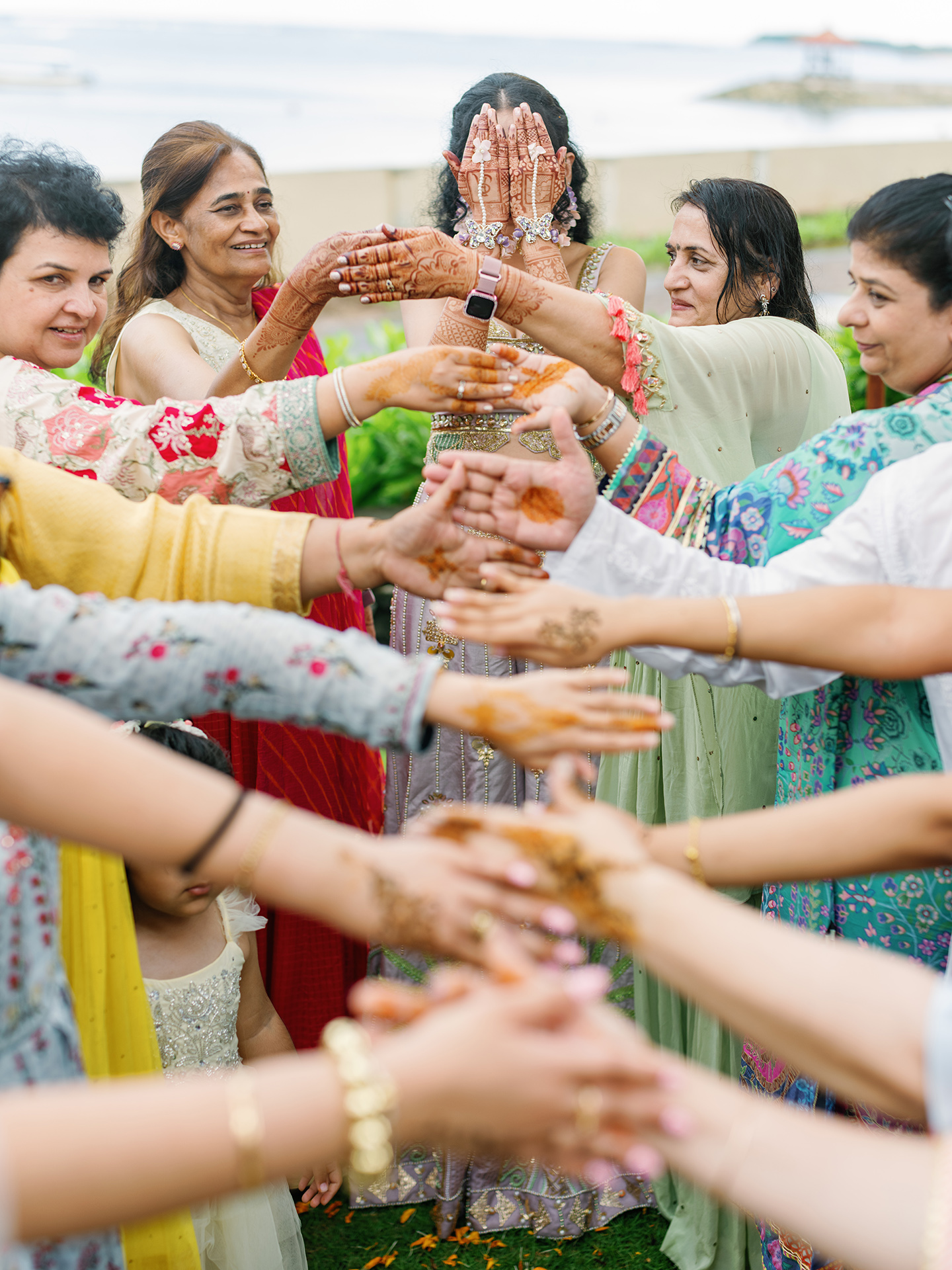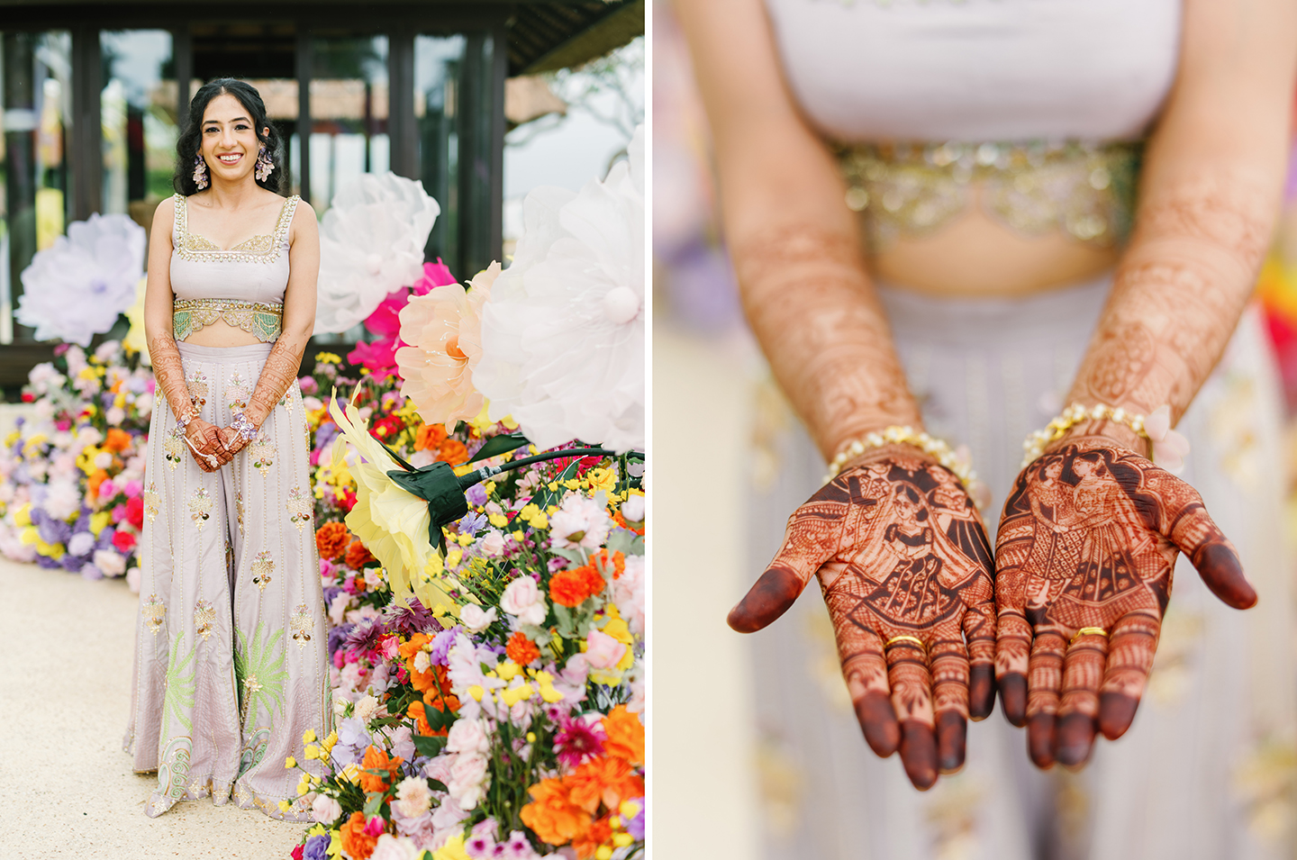 The celebration unfolded slowly, allowing moments to reveal themselves without force. It began with warmth and anticipation. During the Mehendi ceremony, laughter filled the space as delicate henna patterns were drawn with care. Family and close friends gathered closely, sharing stories, gentle touches, and unspoken blessings. Time felt softer here, unhurried, as joy and reflection existed side by side.