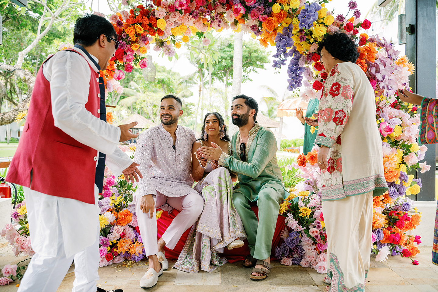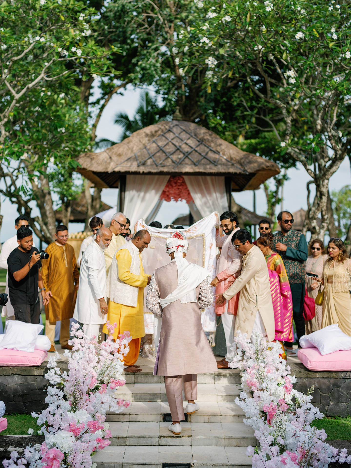 The following day carried a different energy. Calmer, deeper, and more introspective. Under Bali’s open sky, Rohit and Saloni’s wedding ceremony unfolded through sacred rituals passed down through generations. Each gesture felt deliberate. Each step carried meaning. Silence often spoke louder than words.
